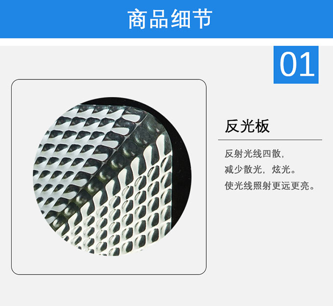1.優質方光板,反射光線四散,減少散光,炫光。使光線照射更遠更亮。