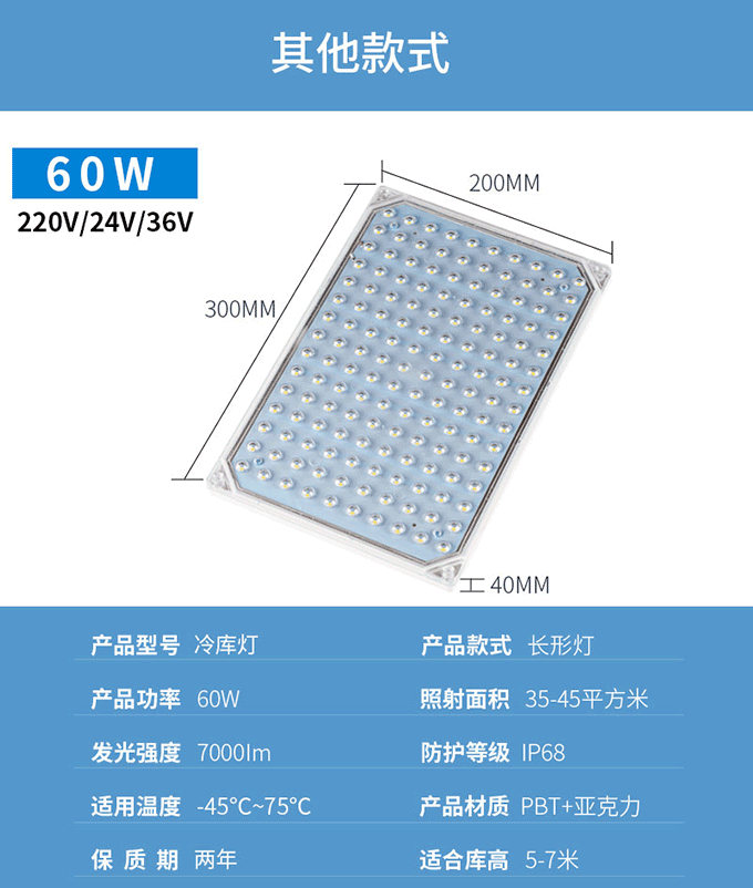 工廠車間、辦公室、食品廠、冷庫、商場、超市、紡織廠、防腐等場所的照明。